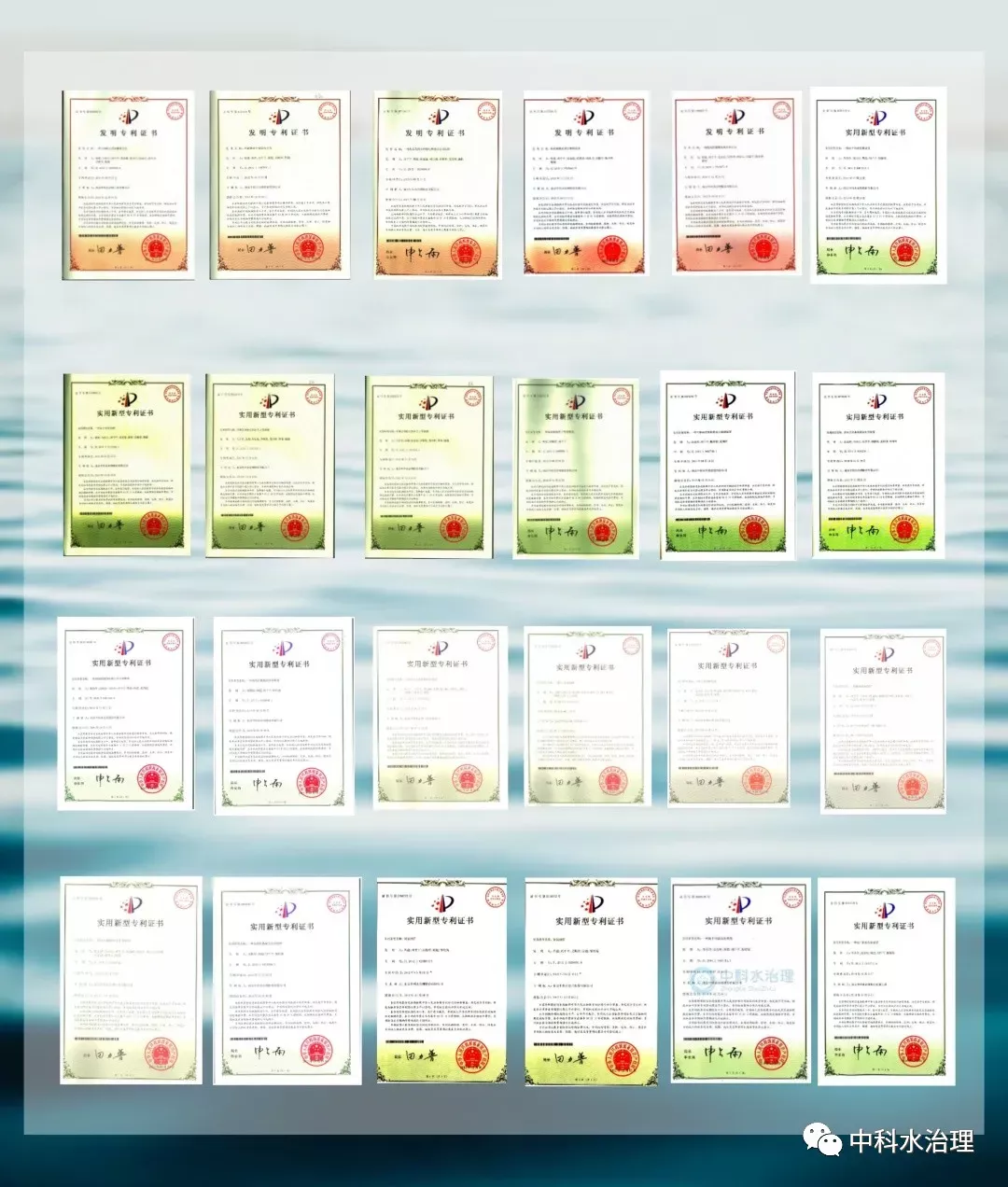2011年,中科水治理獲得國家“高新技術(shù)企業(yè)”認證,完成股份制改造,中科院成為公司第二大股東。上圖為公司獲得過的多項專利證書。