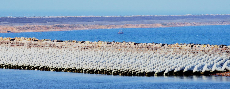 石壩消浪技術具有消浪效果好、使用年限長、結構穩定性好等特點。石壩的結構形式、石壩與湖堤的距離、石壩的高度以及堤頂寬度等,將直接影響到石壩的造價和消浪效果。石壩的結構選形,應根據自然條件、材料來源、使用要求和施工條件等,經技術比較確定。斜坡堤適用于地基較差和石料來源豐富的情況,正砌方塊直立堤適用于地基較好的情況。石壩與湖堤的距離取決于湖堤內需要建設的湖濱帶的寬度。石壩的堤頂高程取決于設計高水位和工程允許越浪的程度。堤頂的高程則根據湖泊的設計波高值取值。實際情況中湖內的大部分石壩在低水位時往往露出水面,基本不越浪或有少量越浪;在湖泊高水位時,則沒入水中,起到潛堤效果。潛堤也能有效地消減作用于湖堤岸線前及灘地上的波浪,能在較大范圍內改變波浪形態,使其由破碎波轉變為淺水推進波,改善原湖堤岸線前灘地上的波浪、水流動力條件,從而達到保護原湖堤岸線與湖灘免受波浪淘刷的目的。